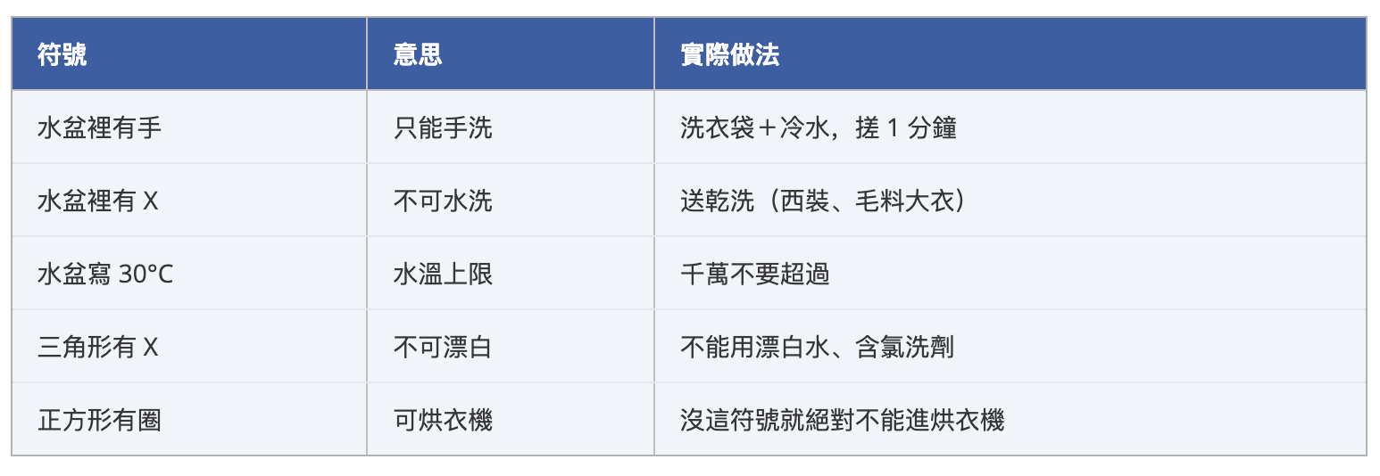 洗標看起來像天書,但只要記 5 個符號就夠用 80% 場合