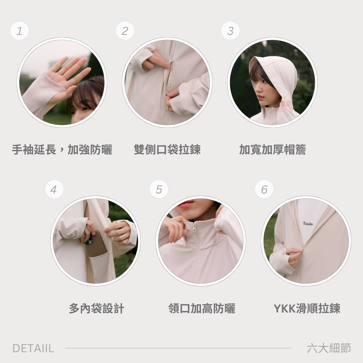 2.整件專業防曬機能面料,一戴上帽子就不易吸熱