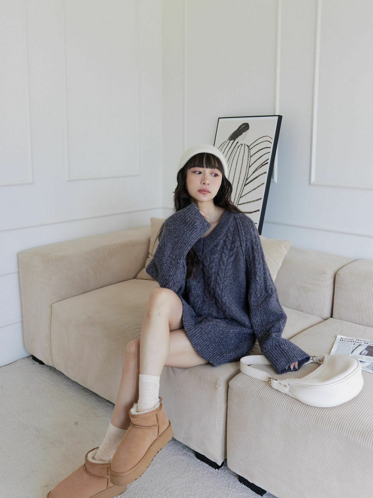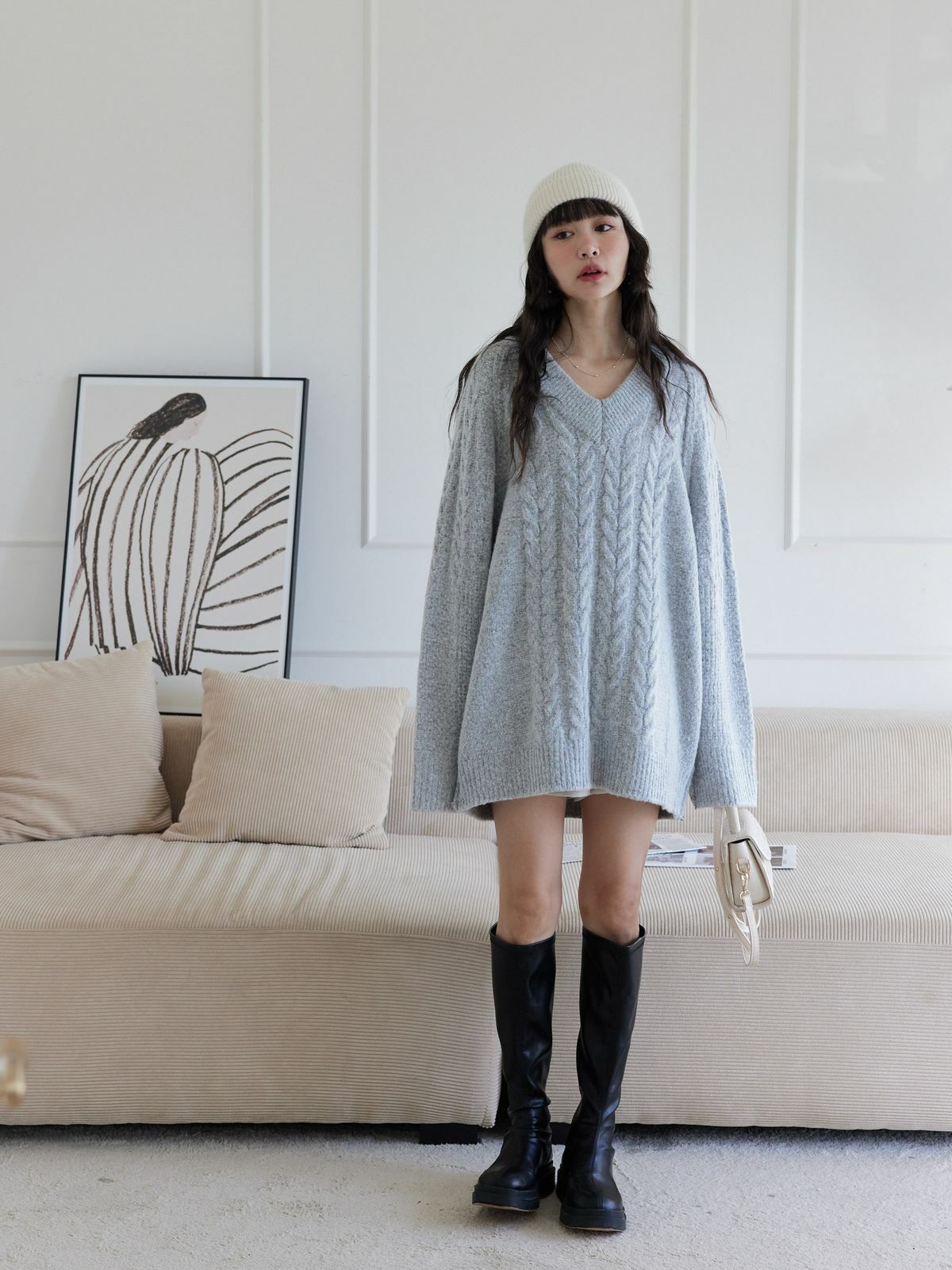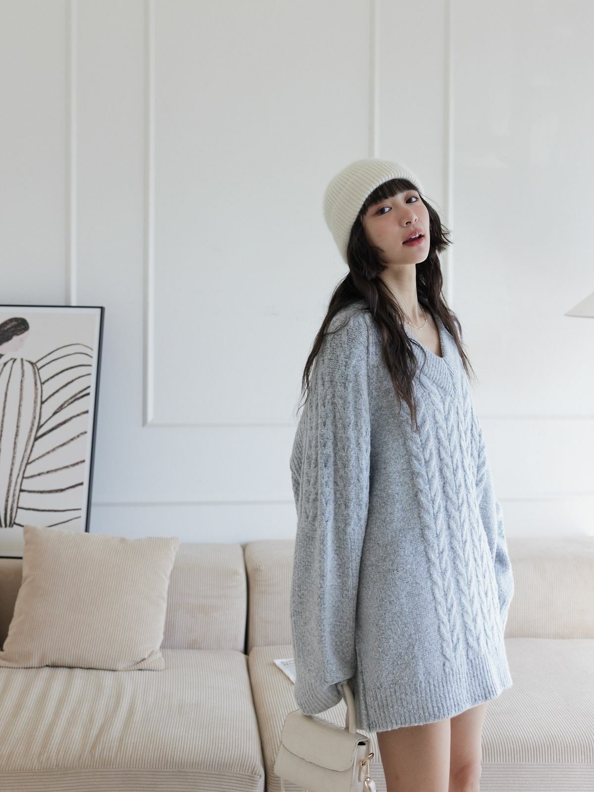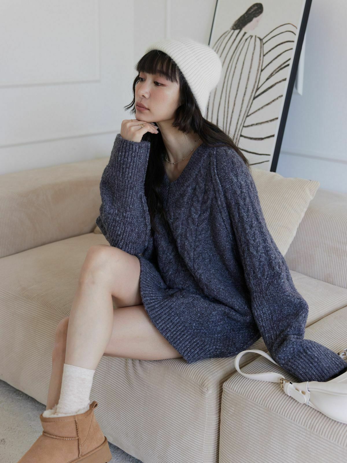 小個子可以當成小洋裝穿的麻花上衣!❄️