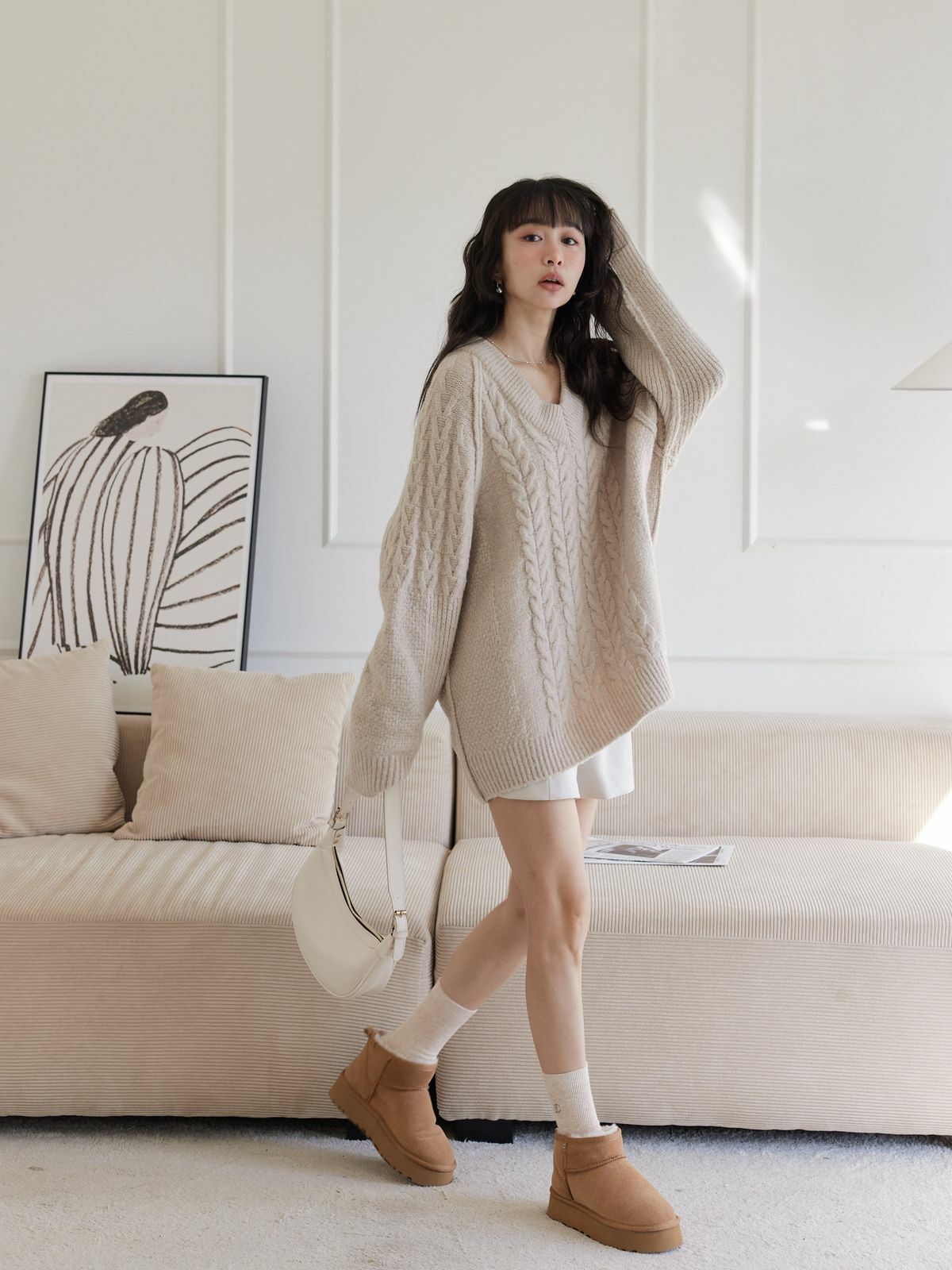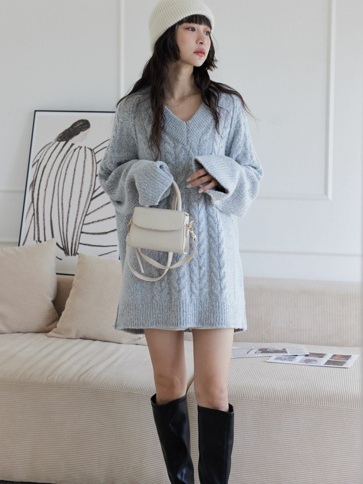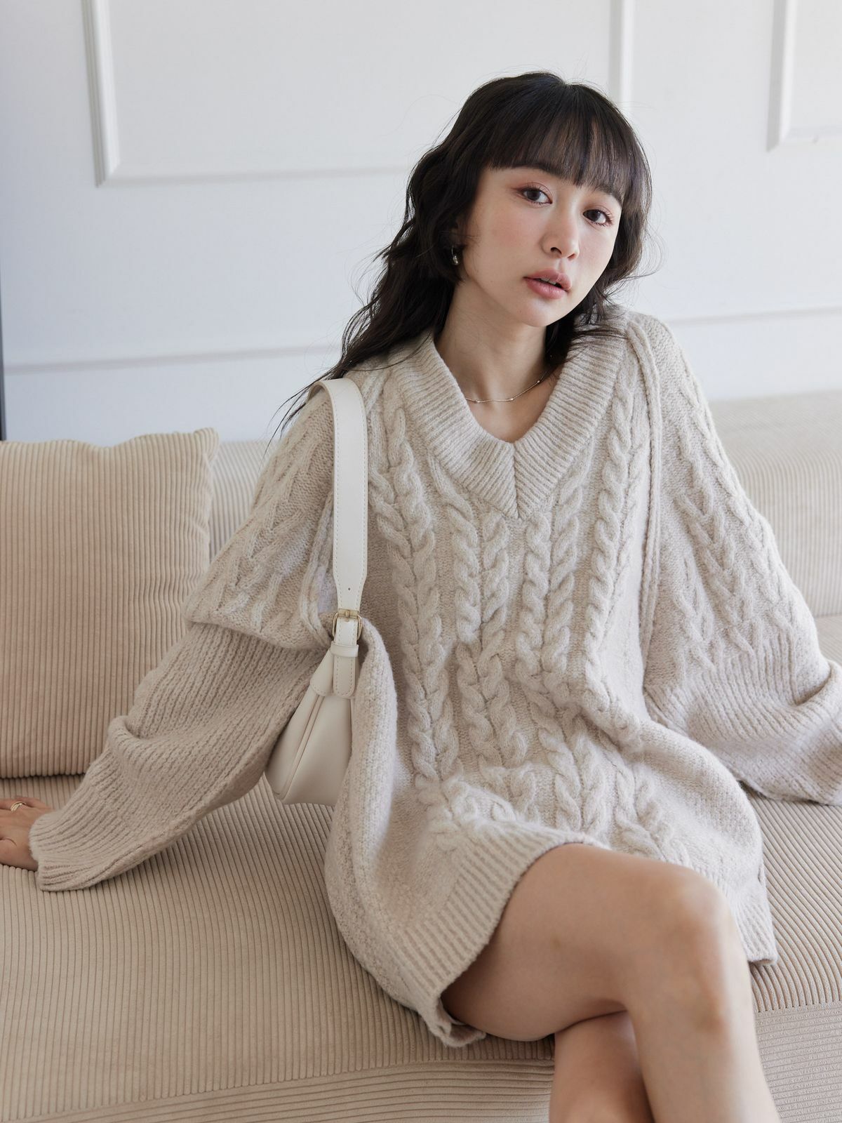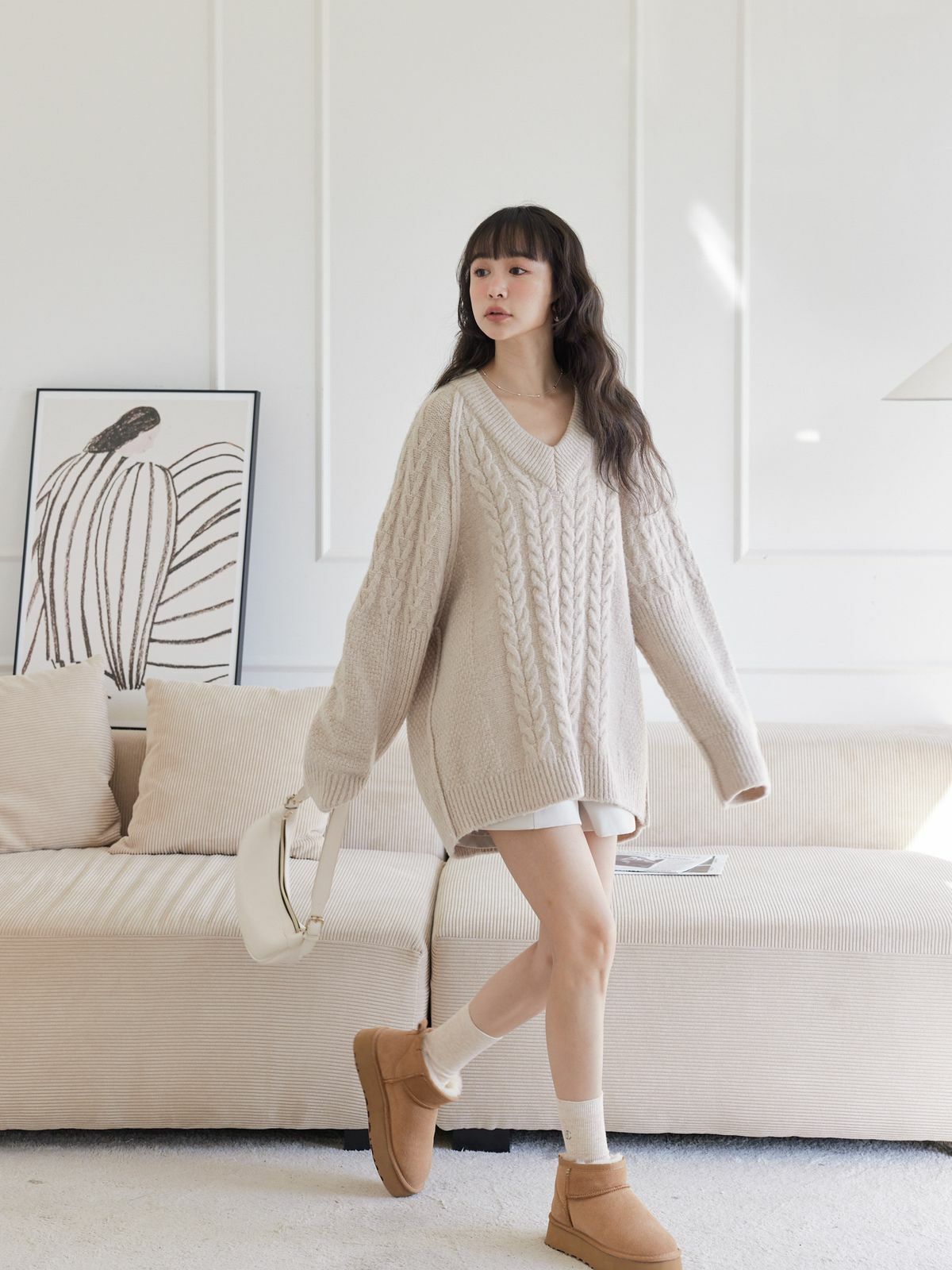 小個子可以當成小洋裝穿的麻花上衣!❄️