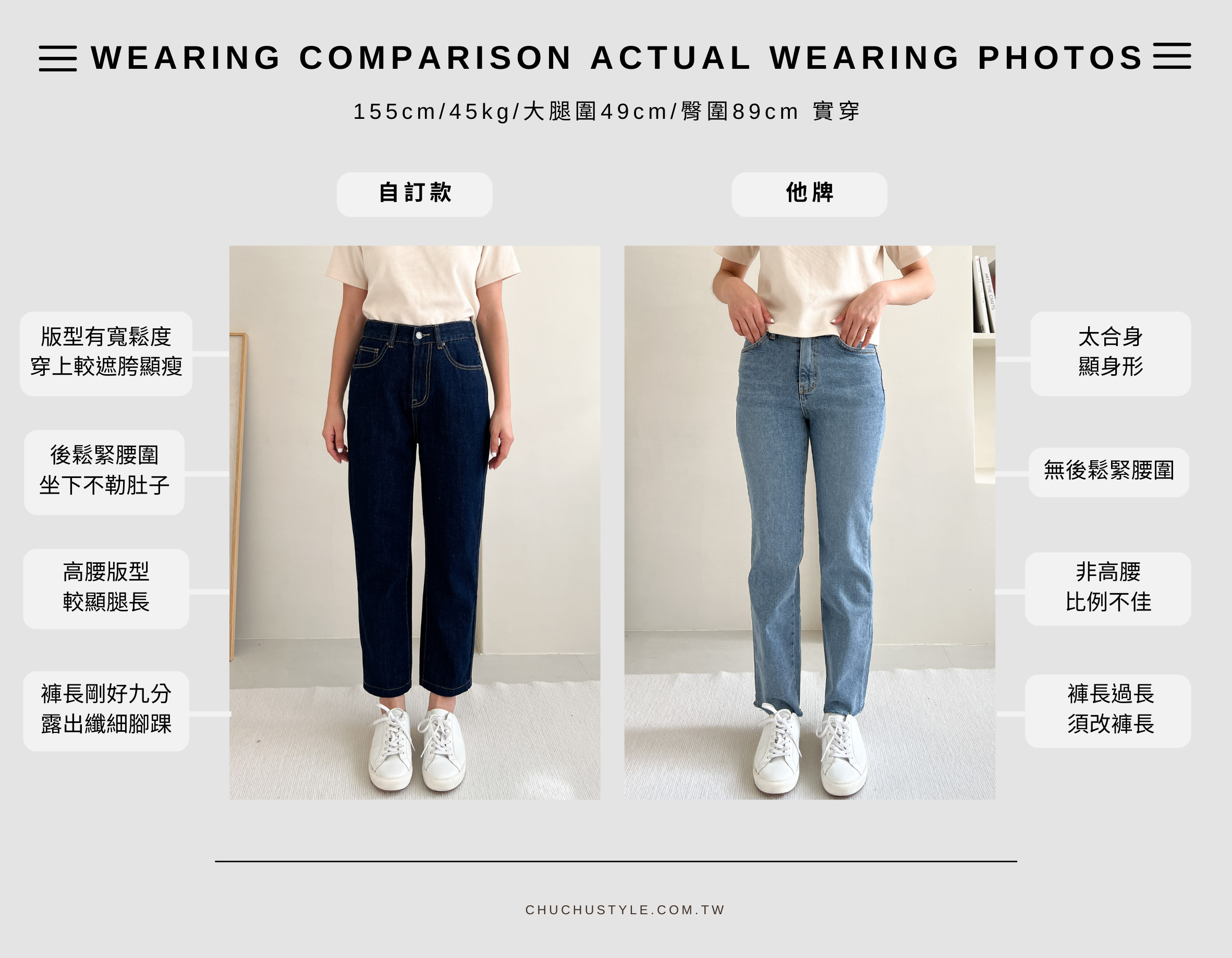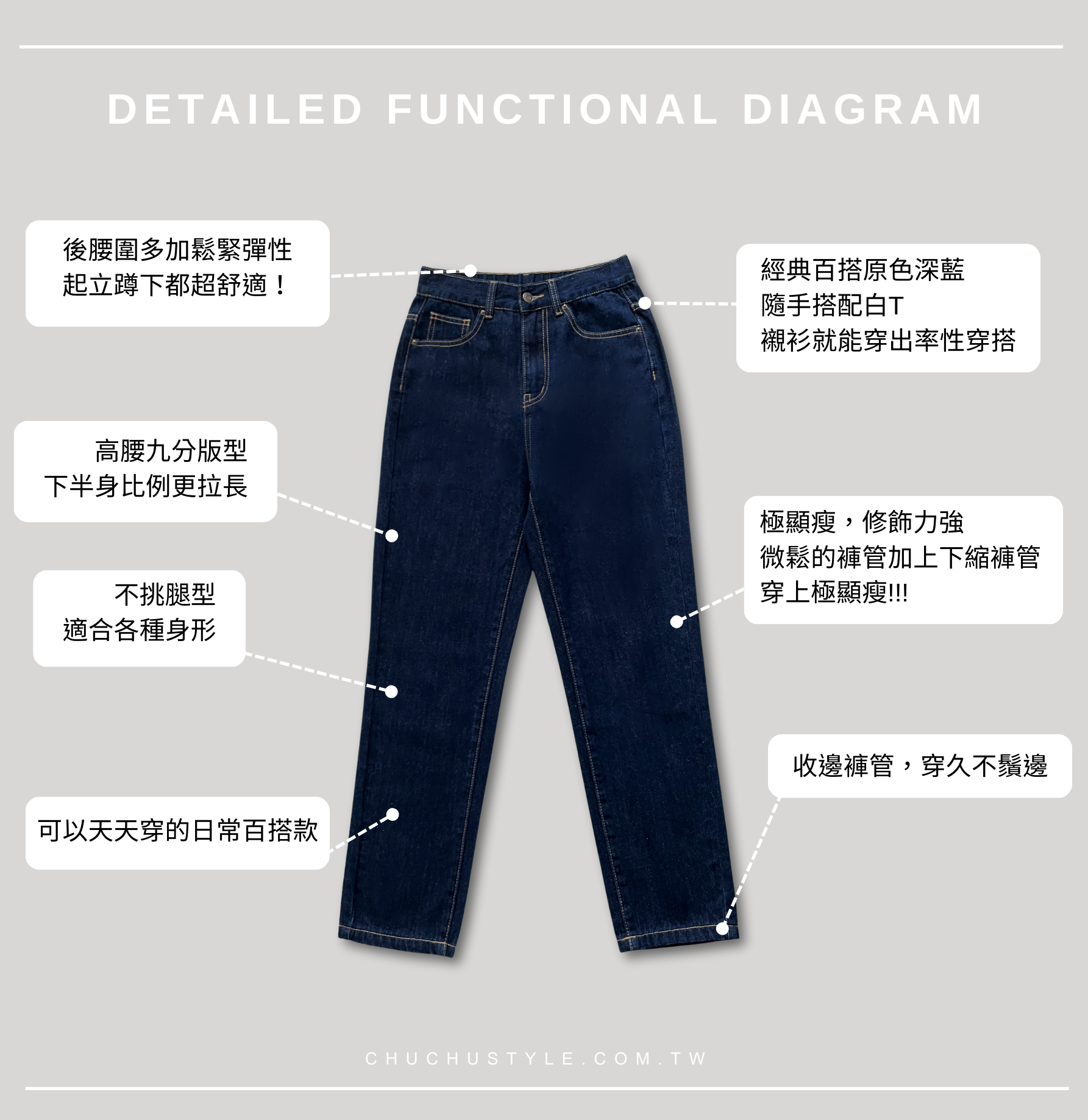 ❸高腰九分版型,下半身比例更拉長