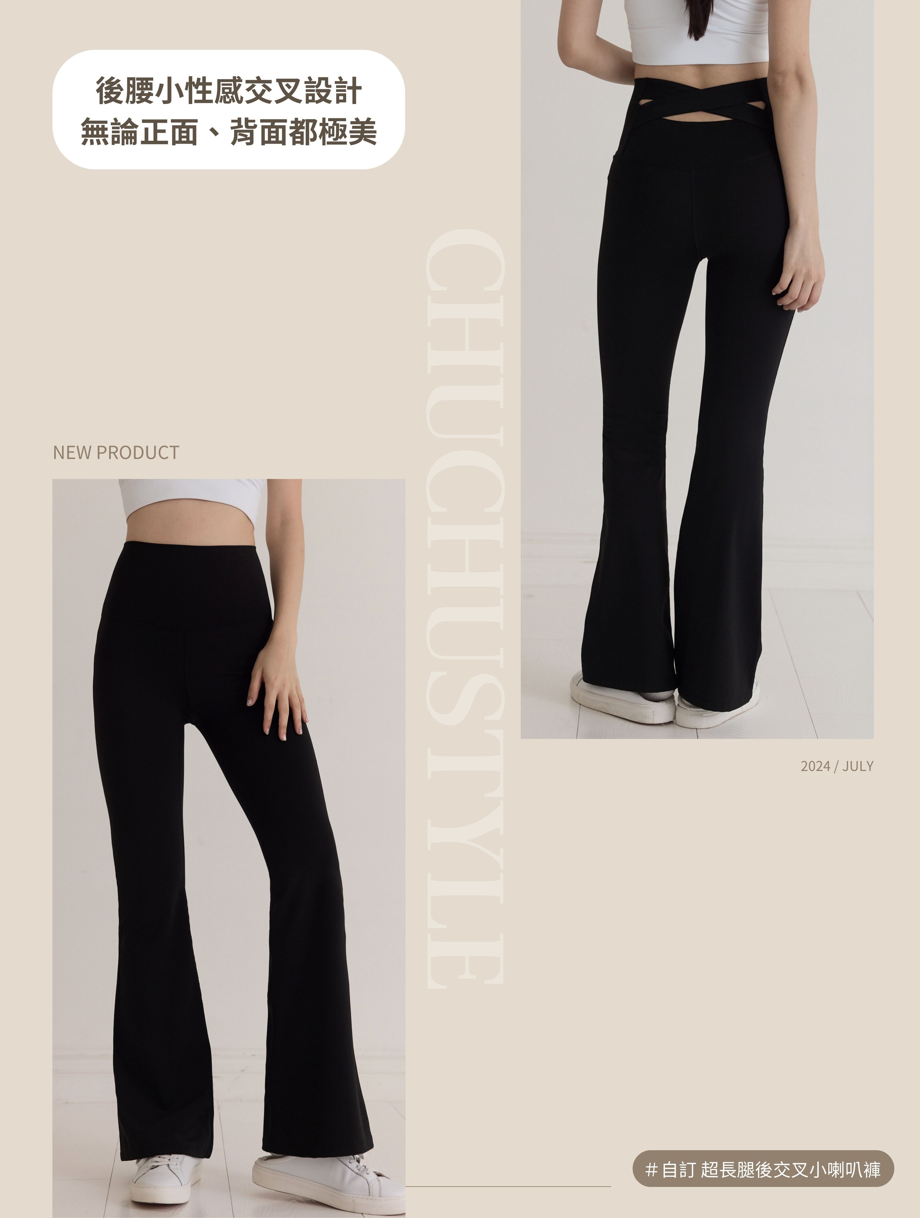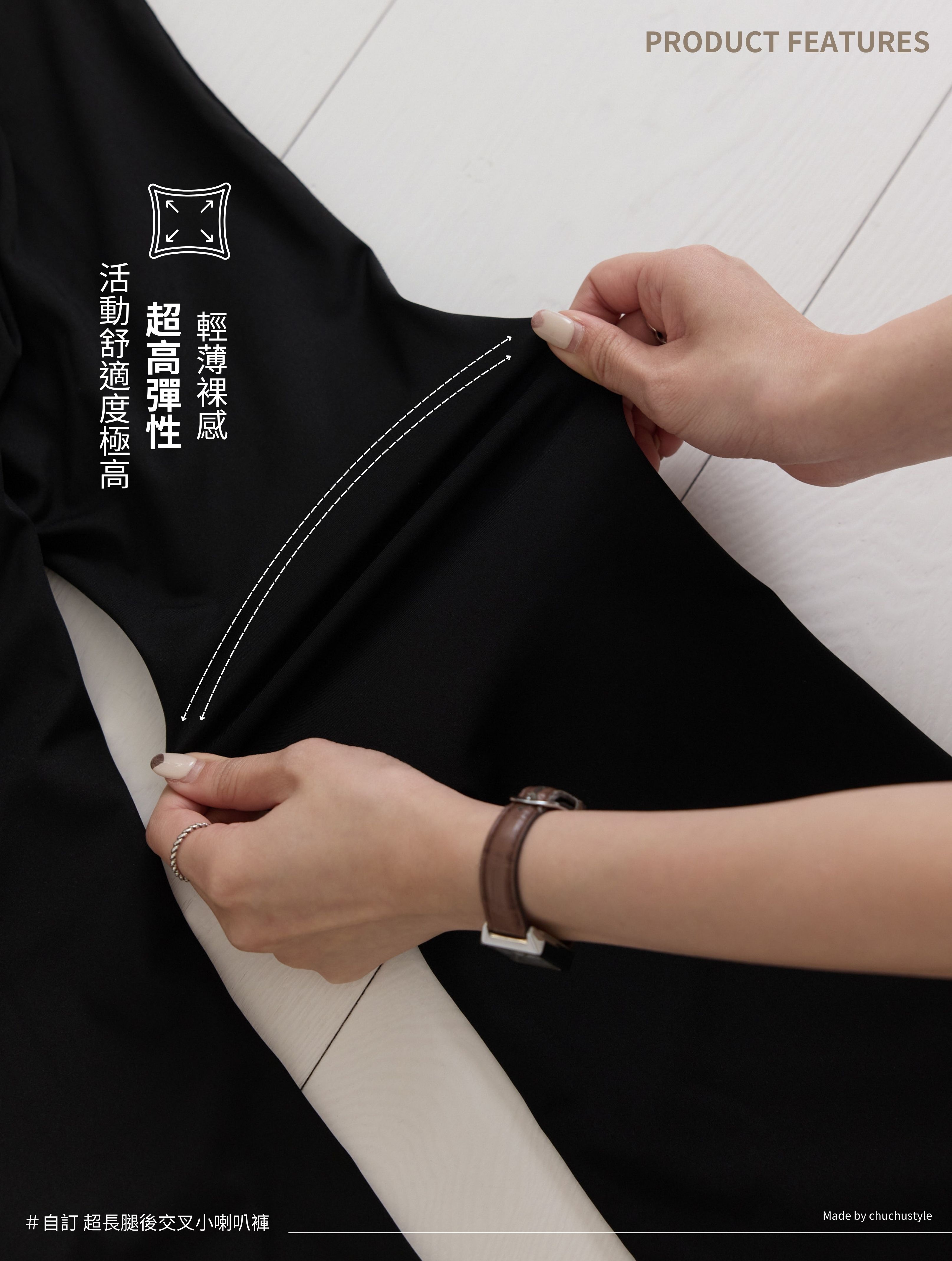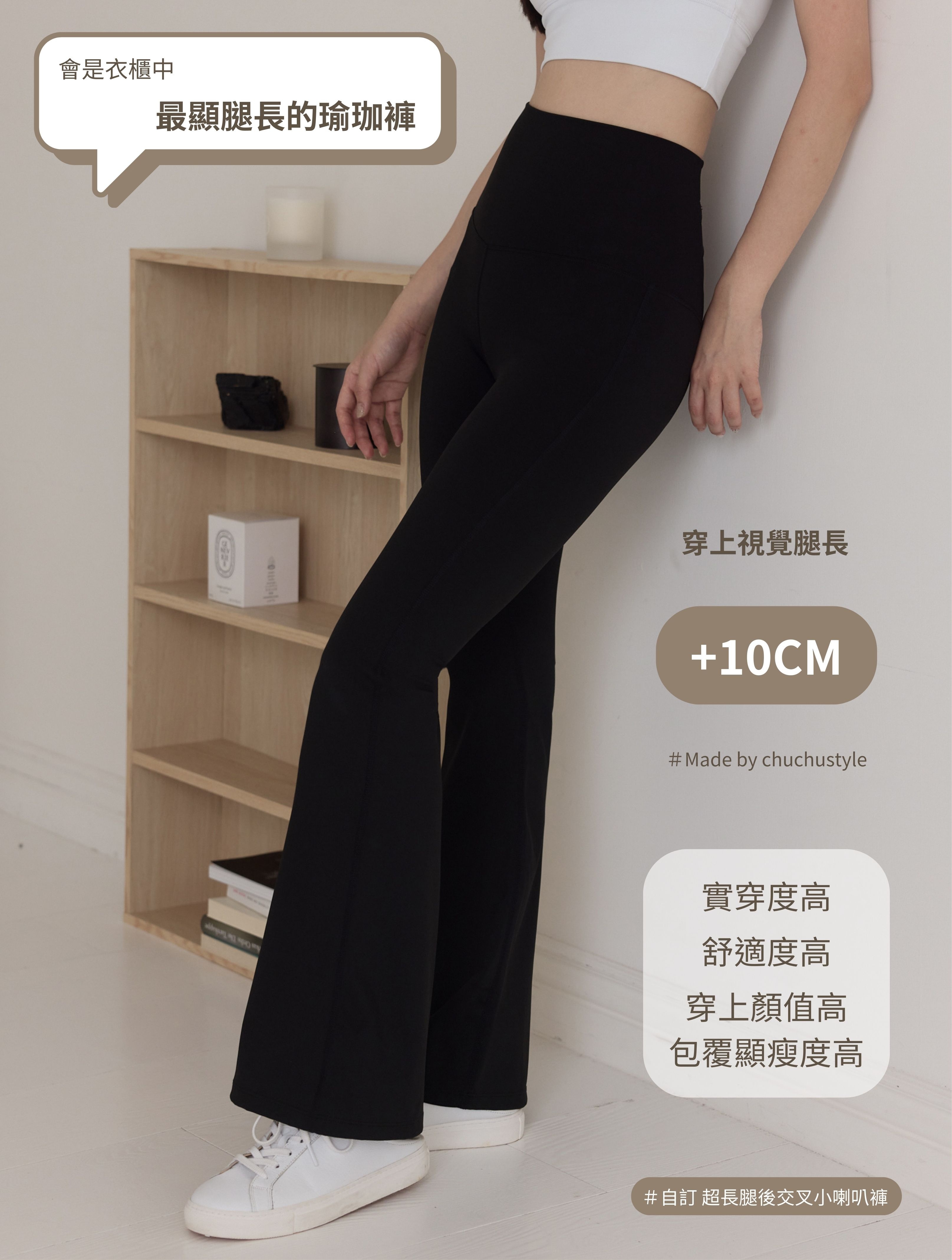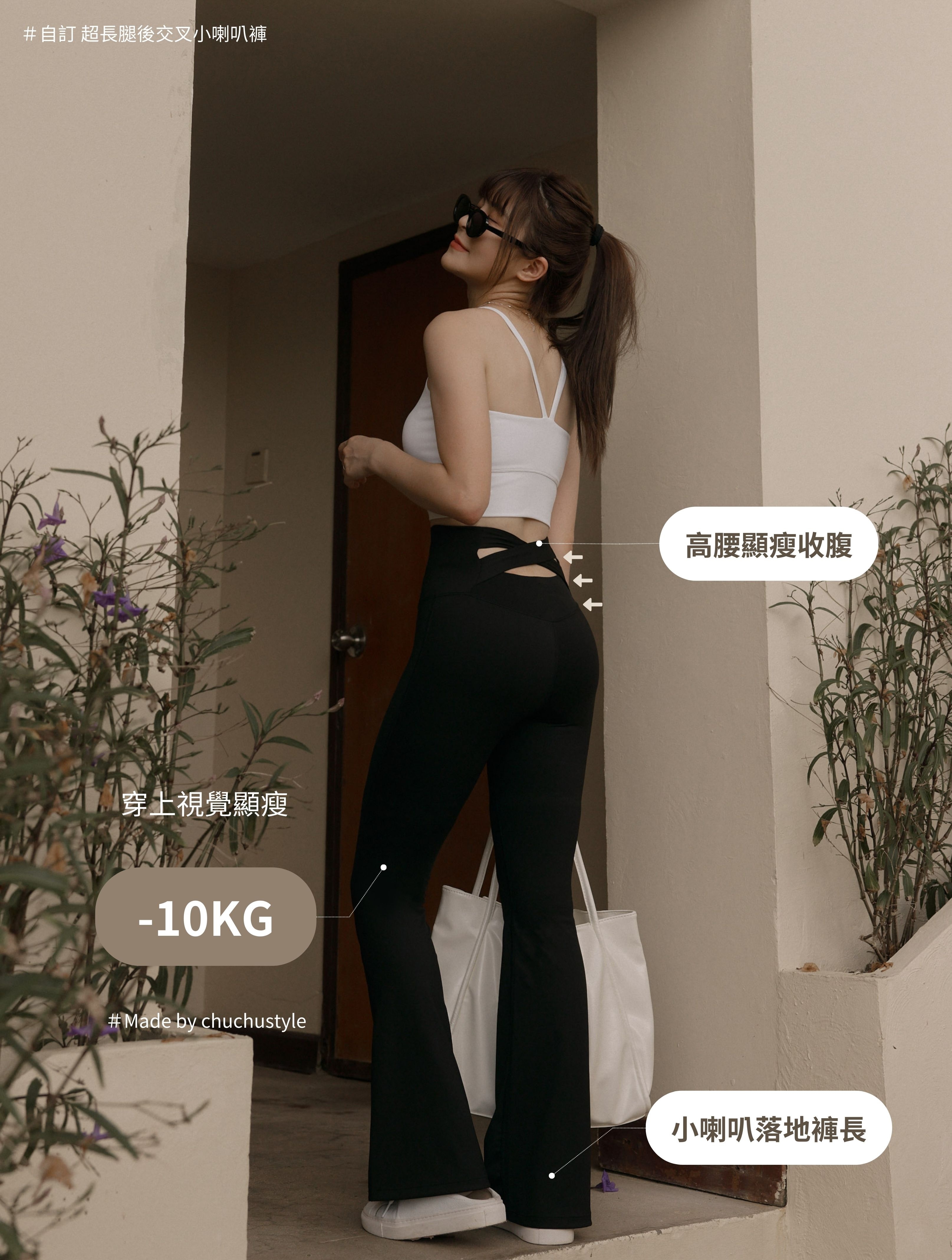 ❹高腰顯瘦收腹+小喇叭落地褲長