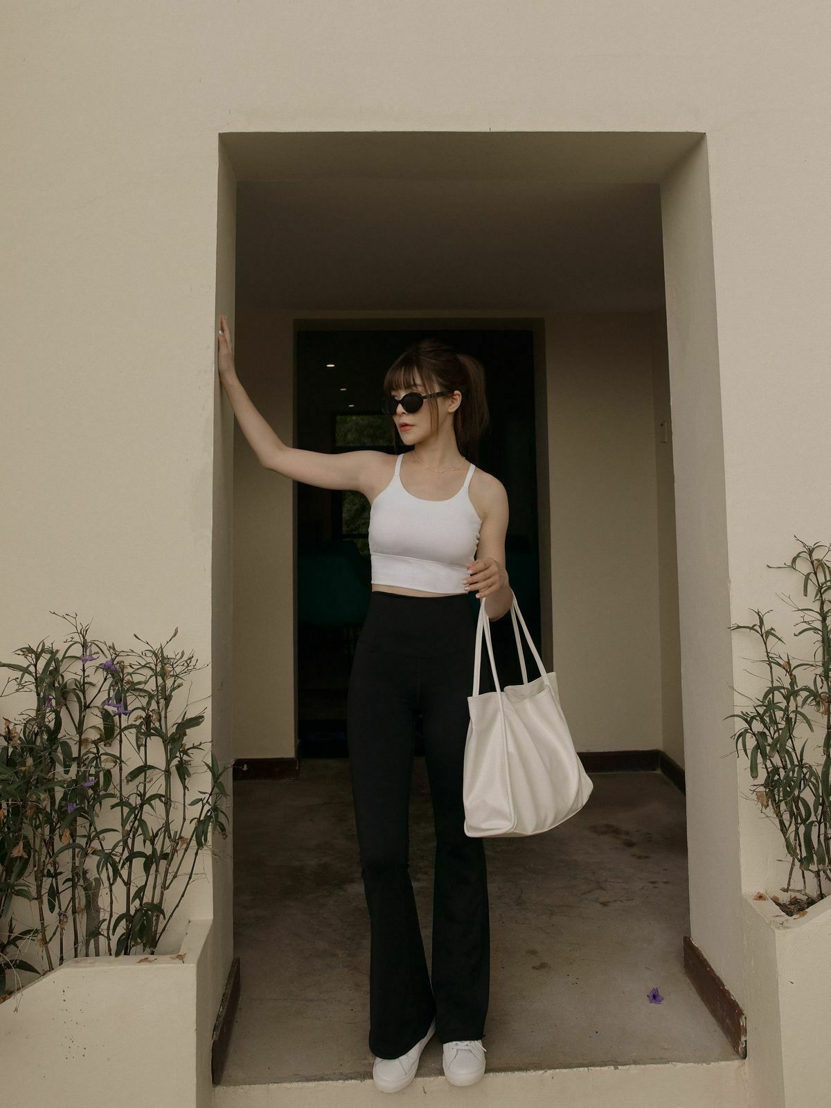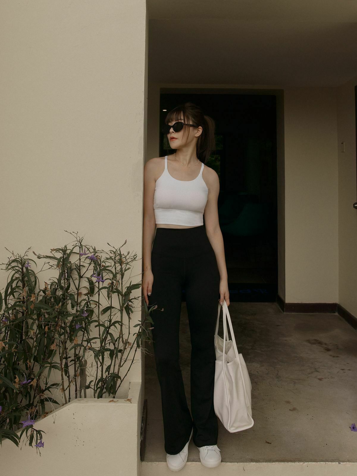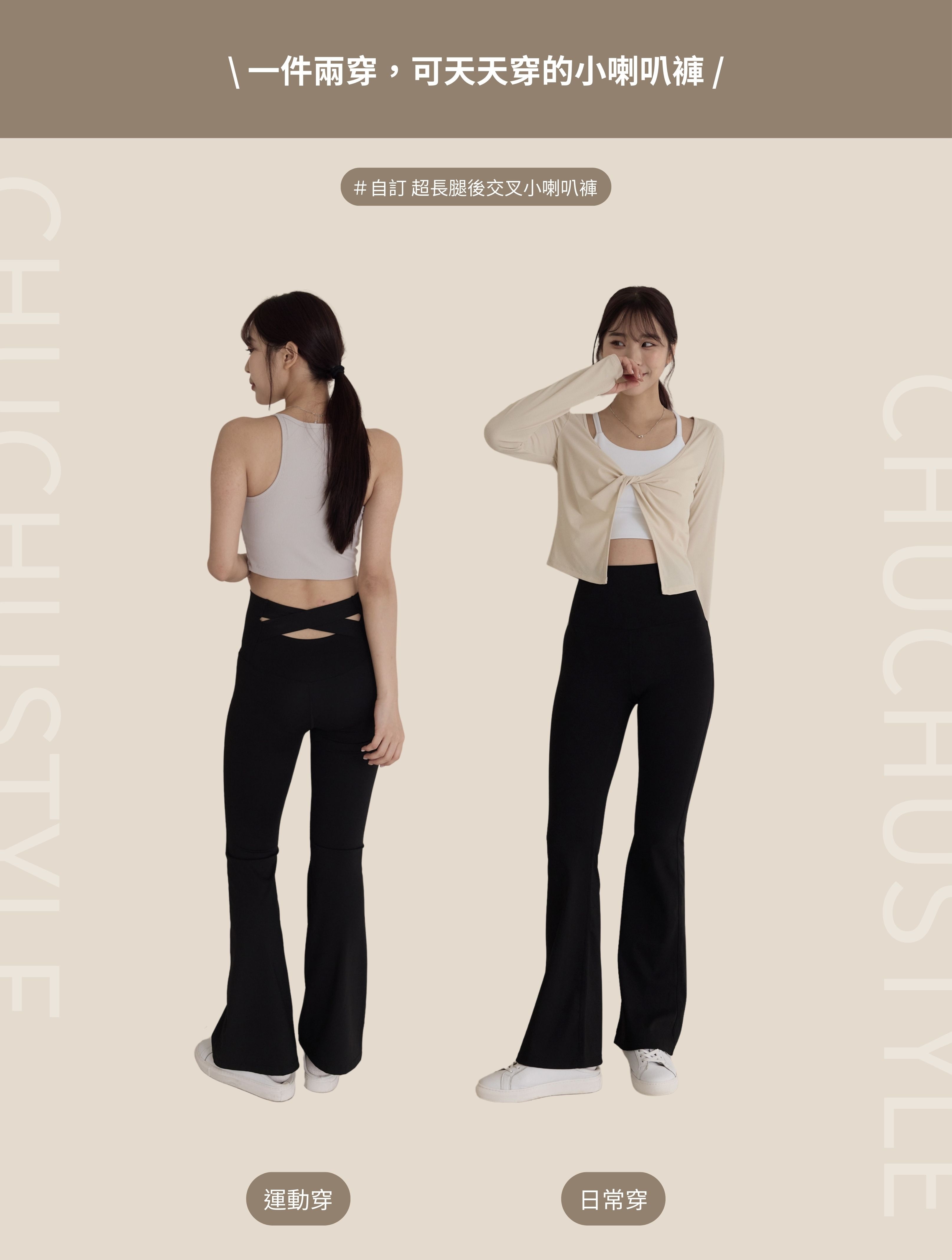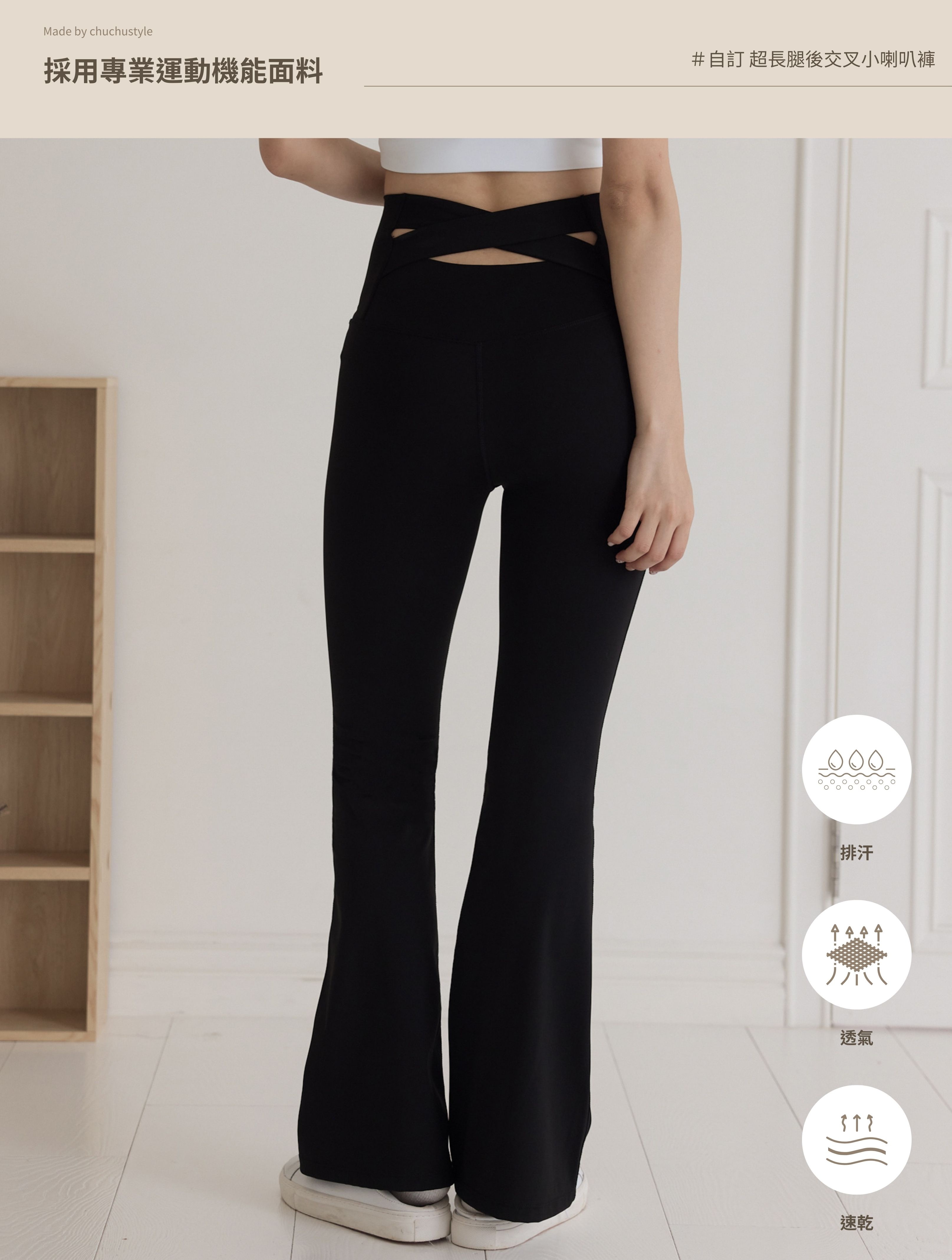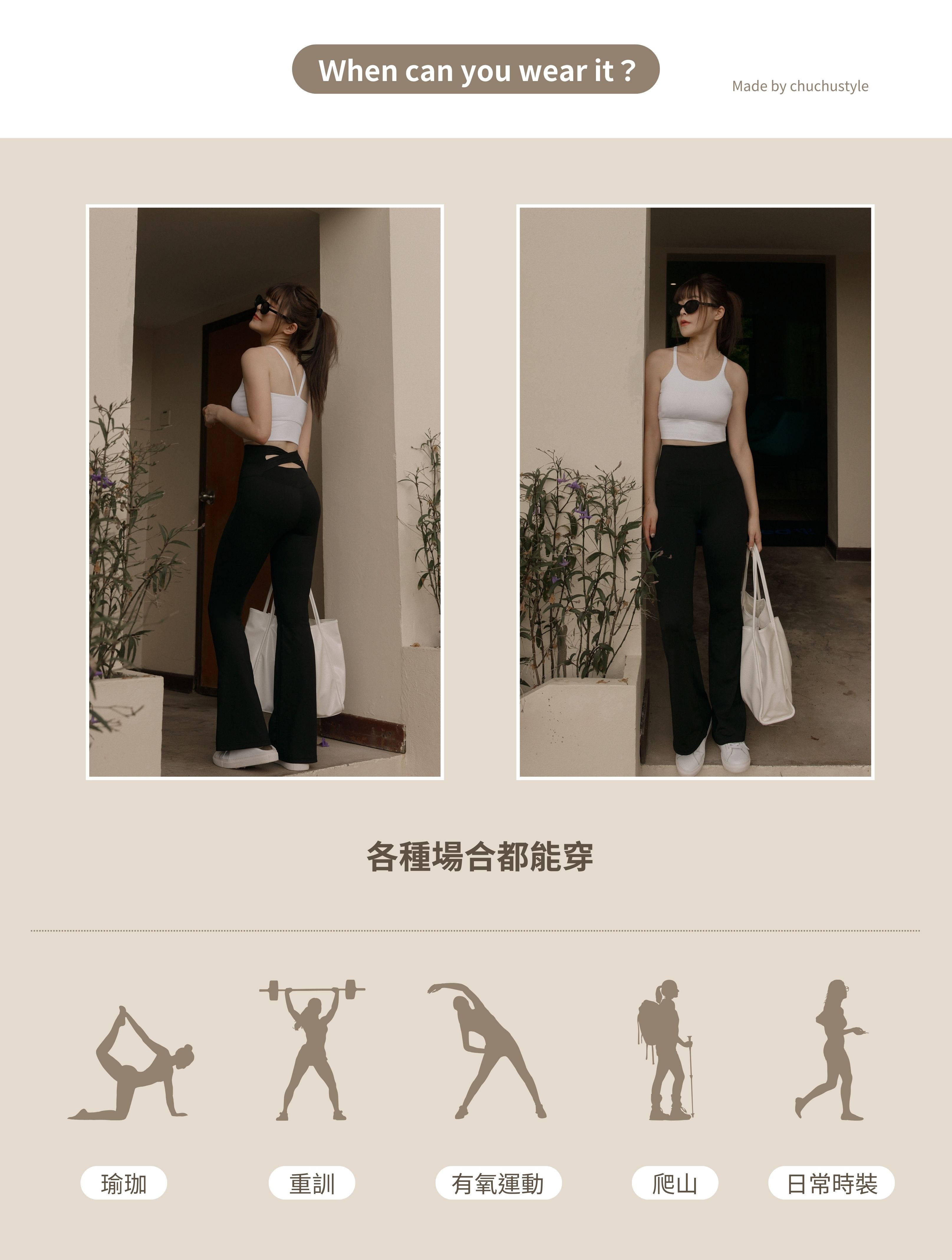 ❹高腰顯瘦收腹+小喇叭落地褲長