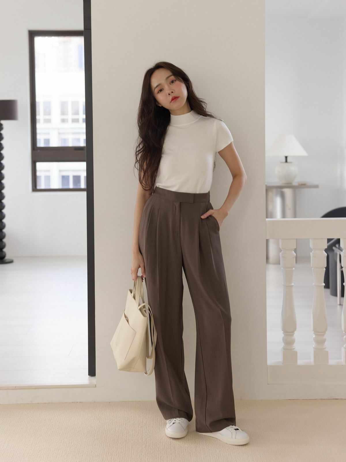 ✔️ 雙打褶俐落造型,不顯臀兩側很順身