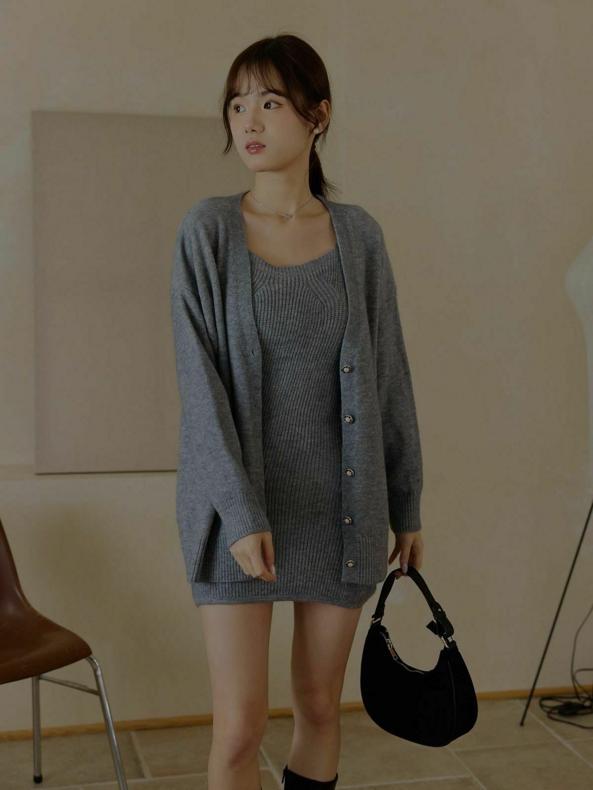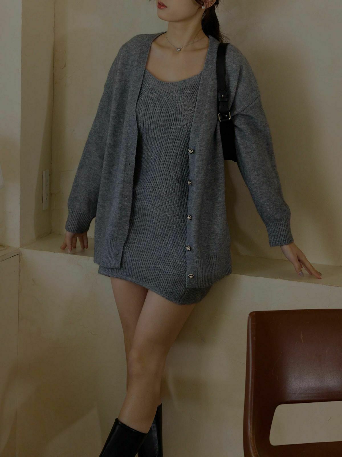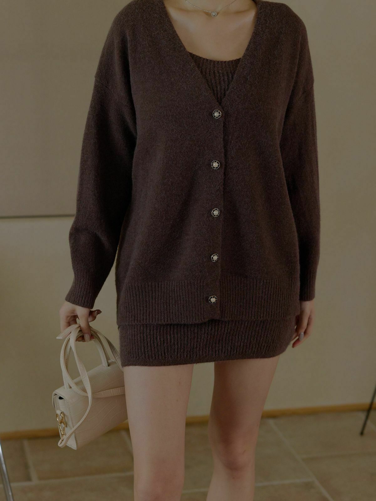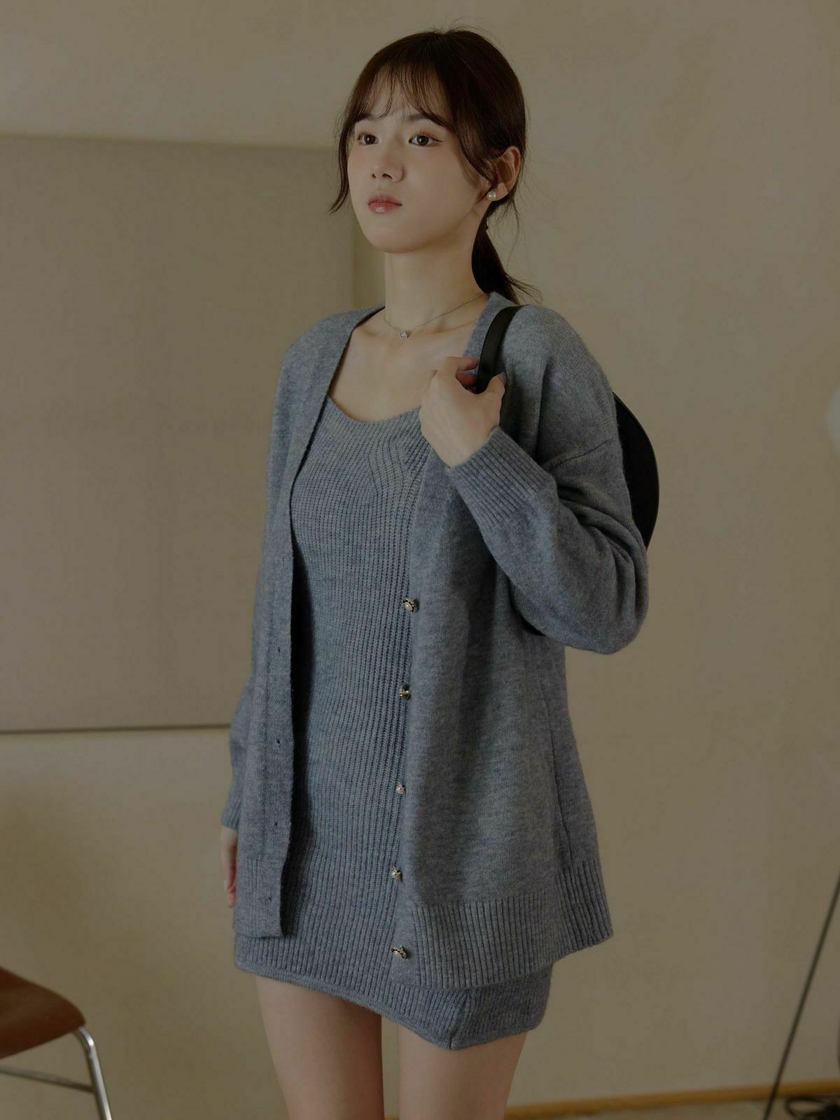 一套包含『寬肩帶長版背心+V領針織外套』✨