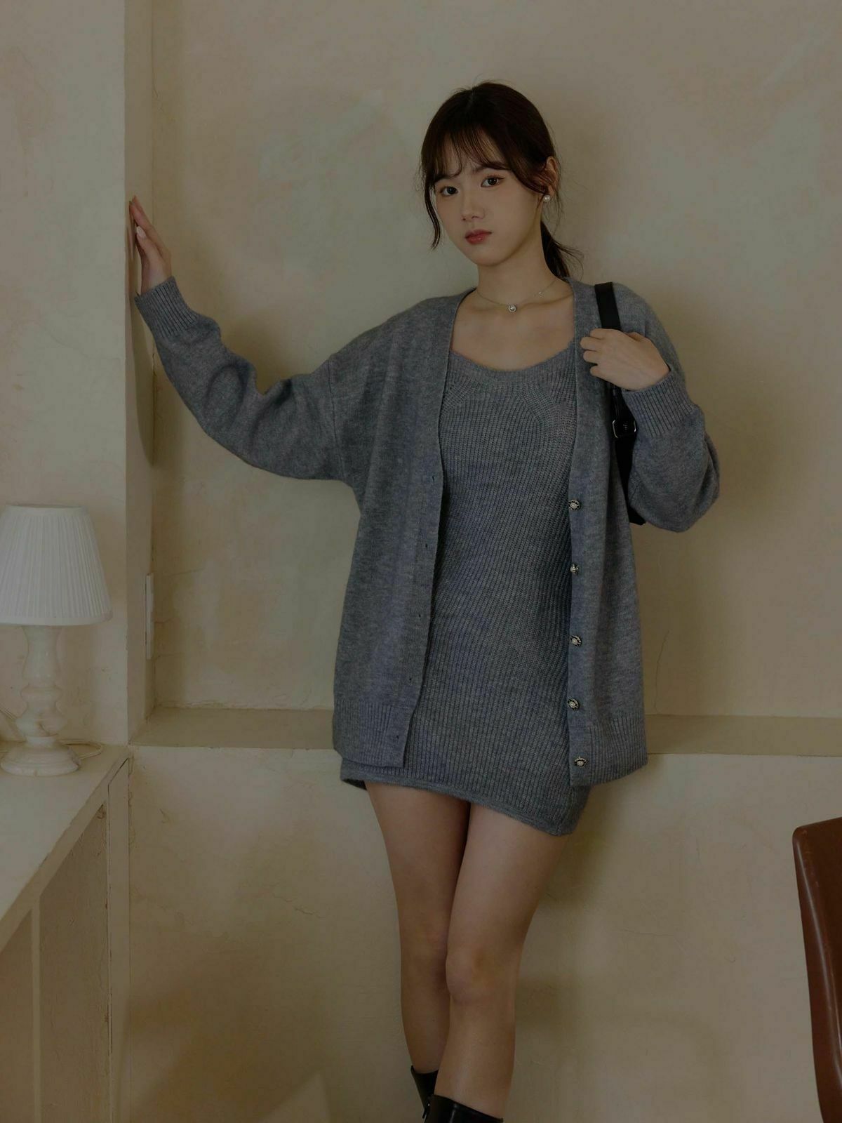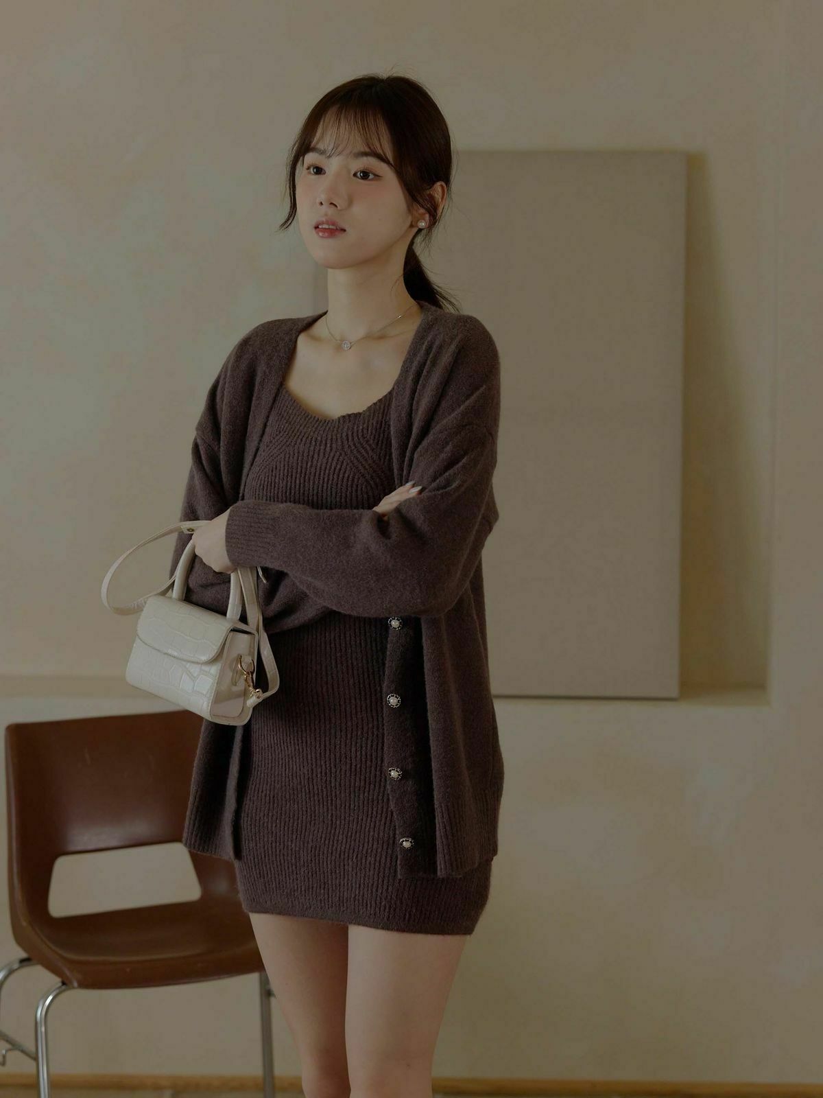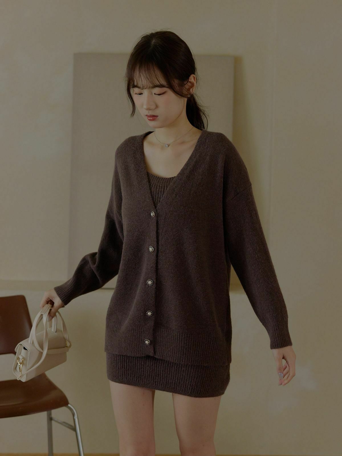 一套包含『寬肩帶長版背心+V領針織外套』✨