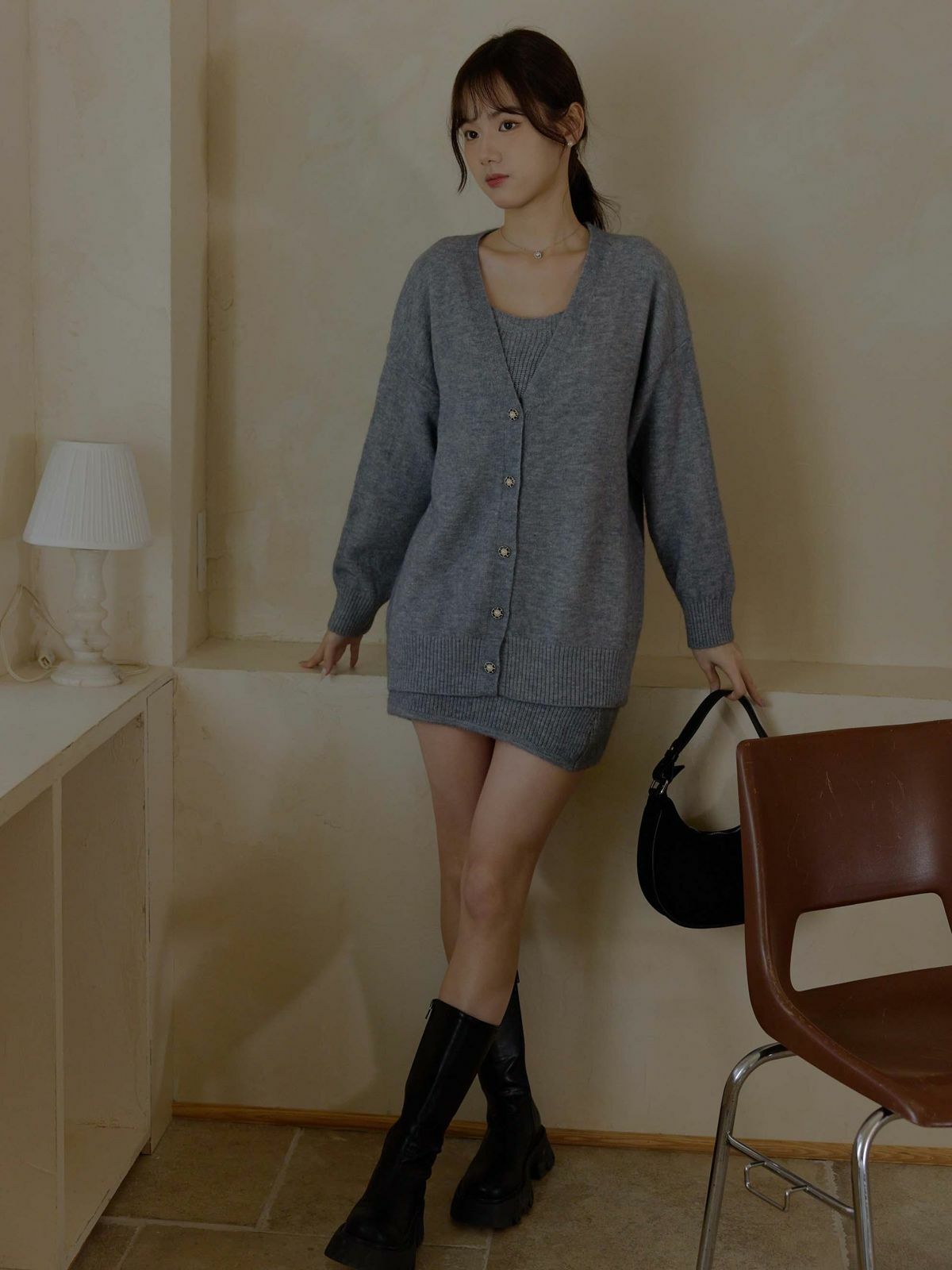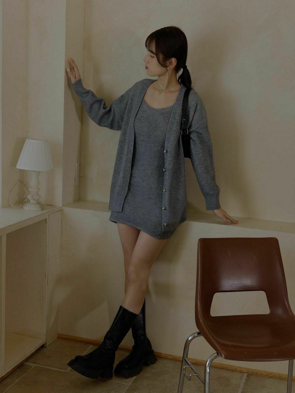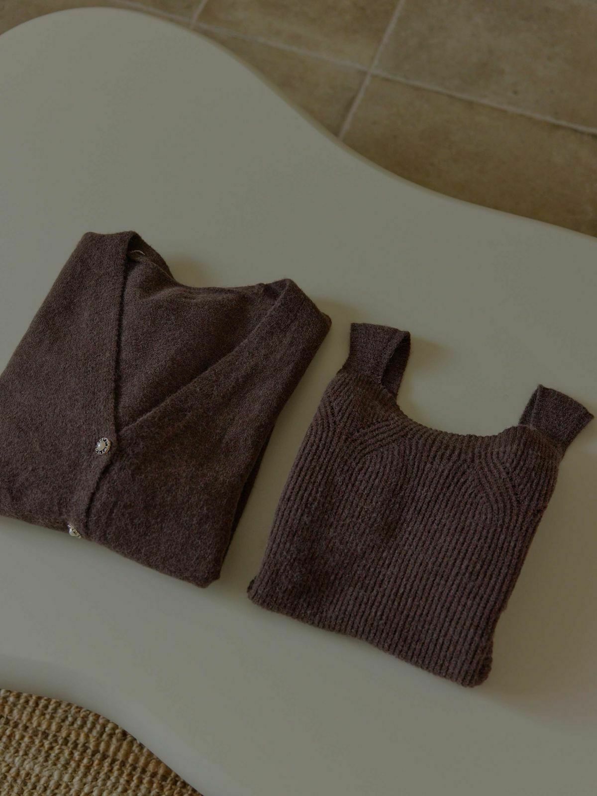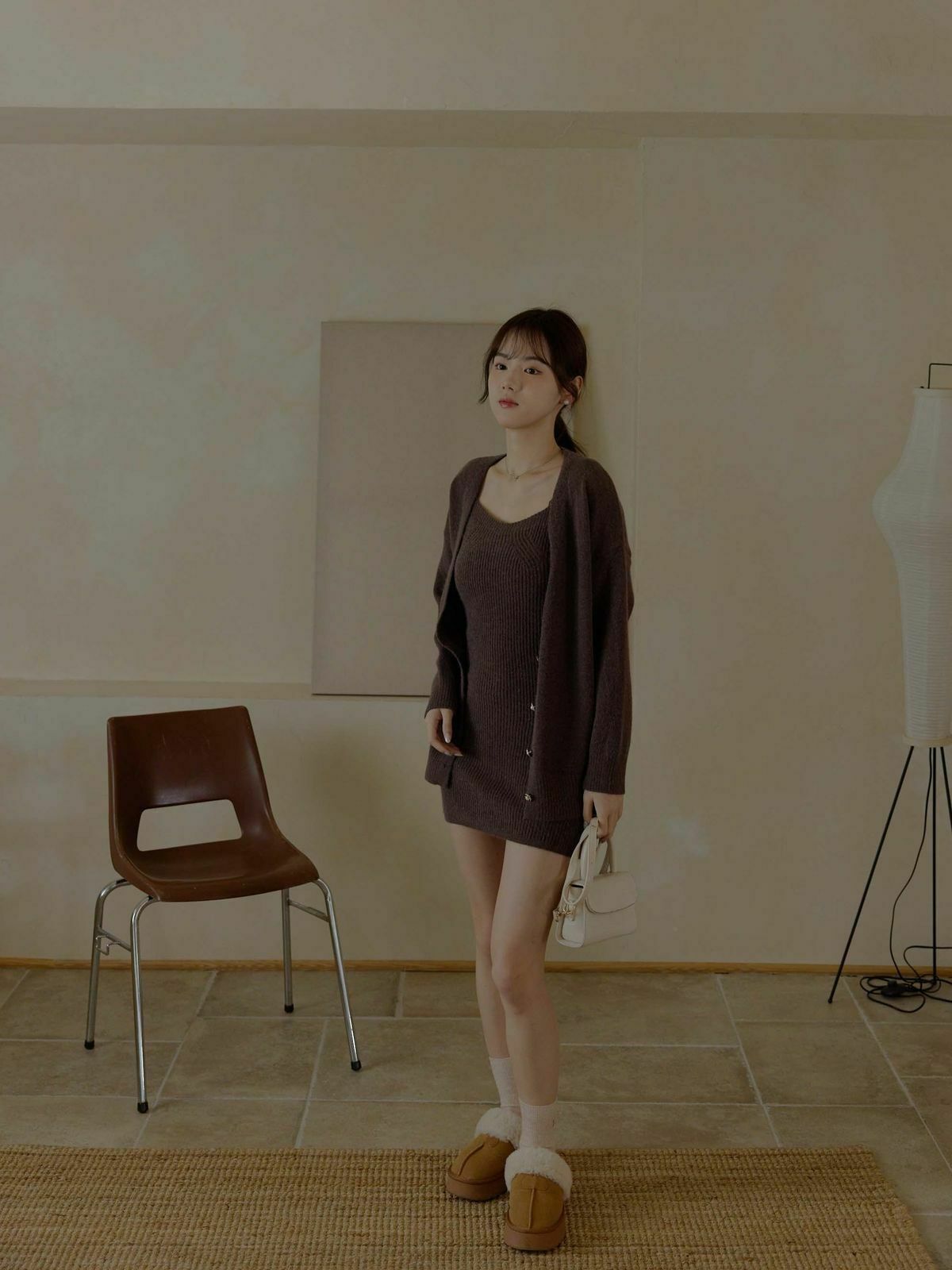 一套包含『寬肩帶長版背心+V領針織外套』✨