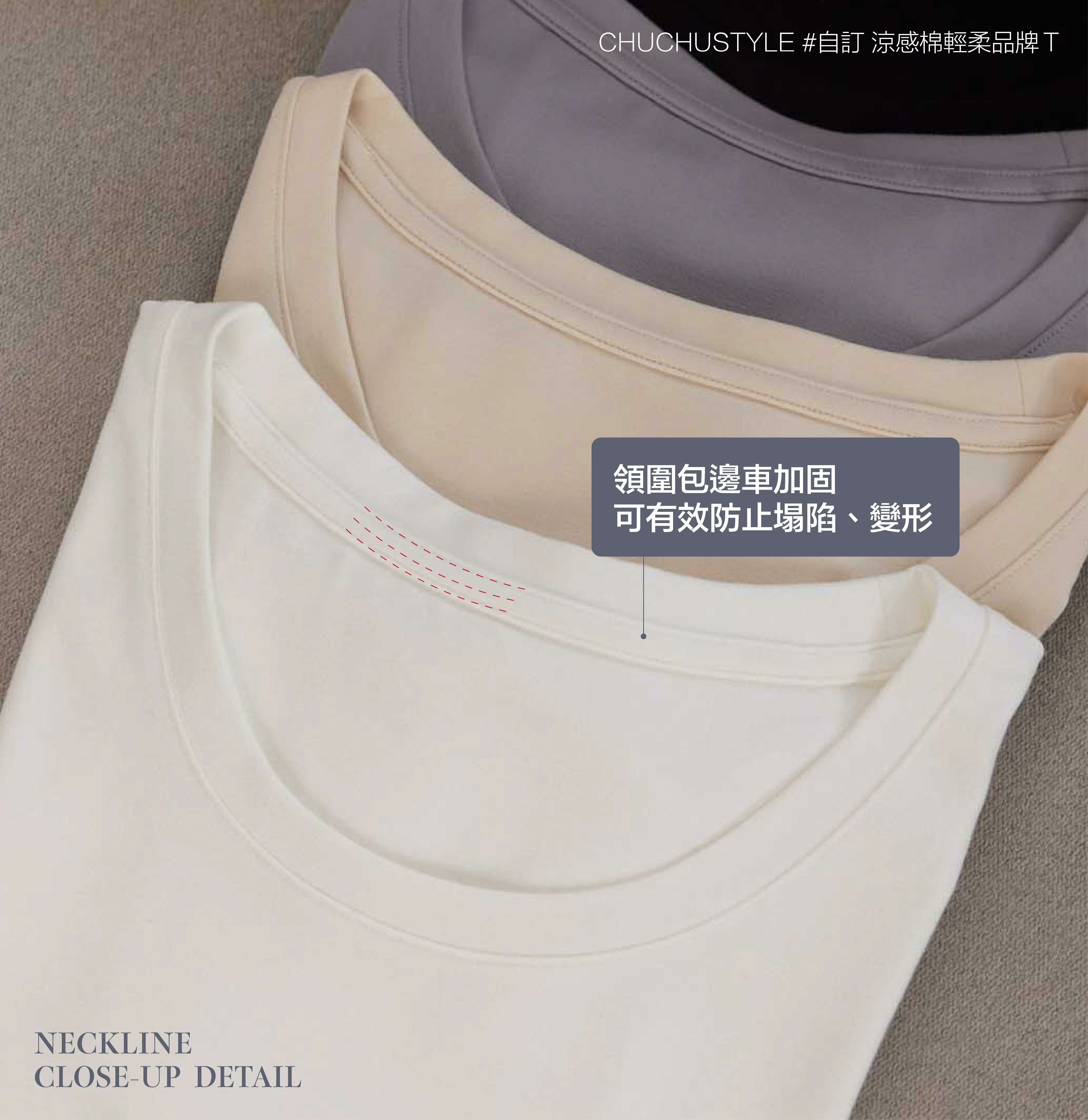 ❺領口雙重加固,採用滾邊車縫,更耐穿