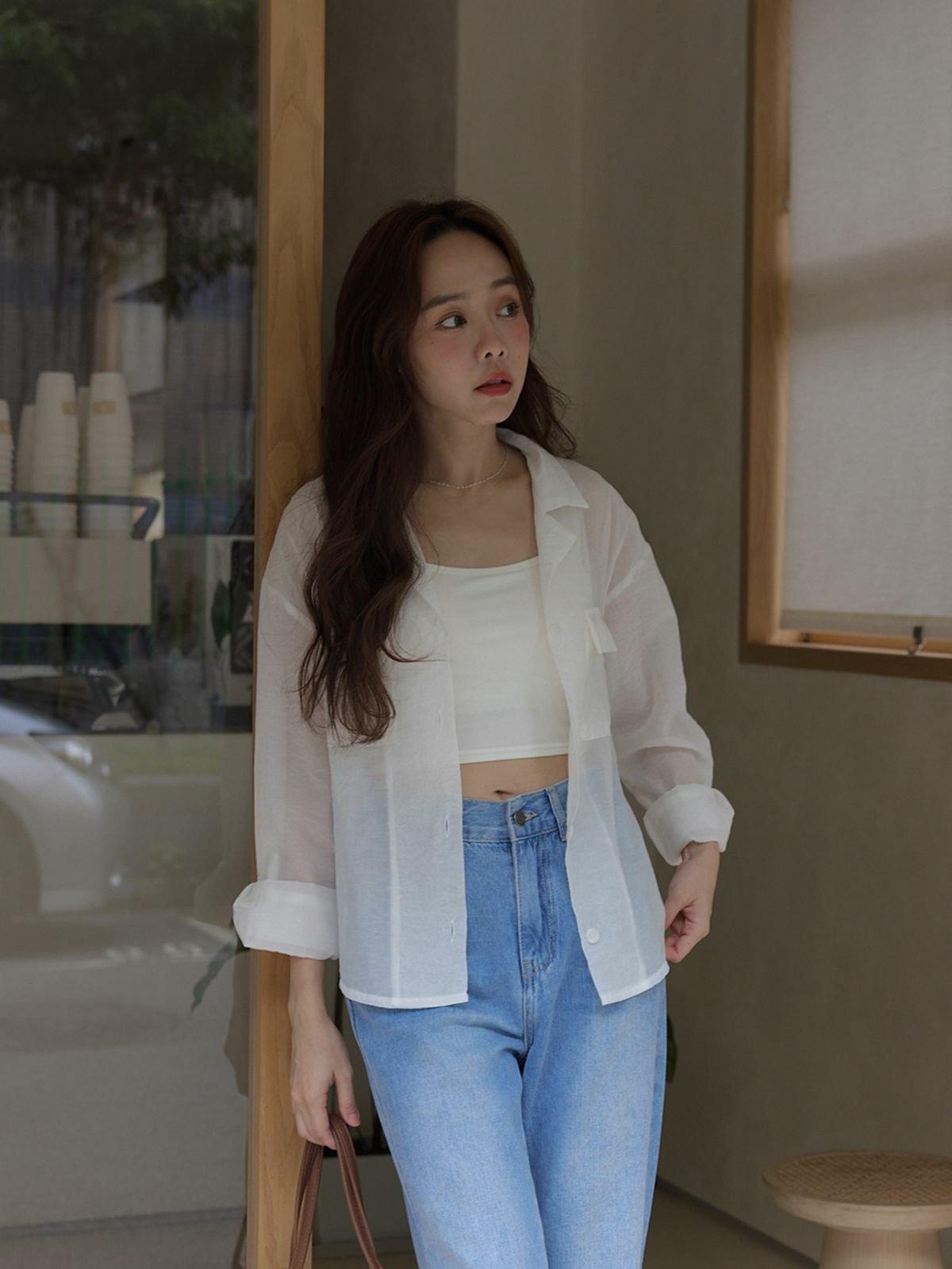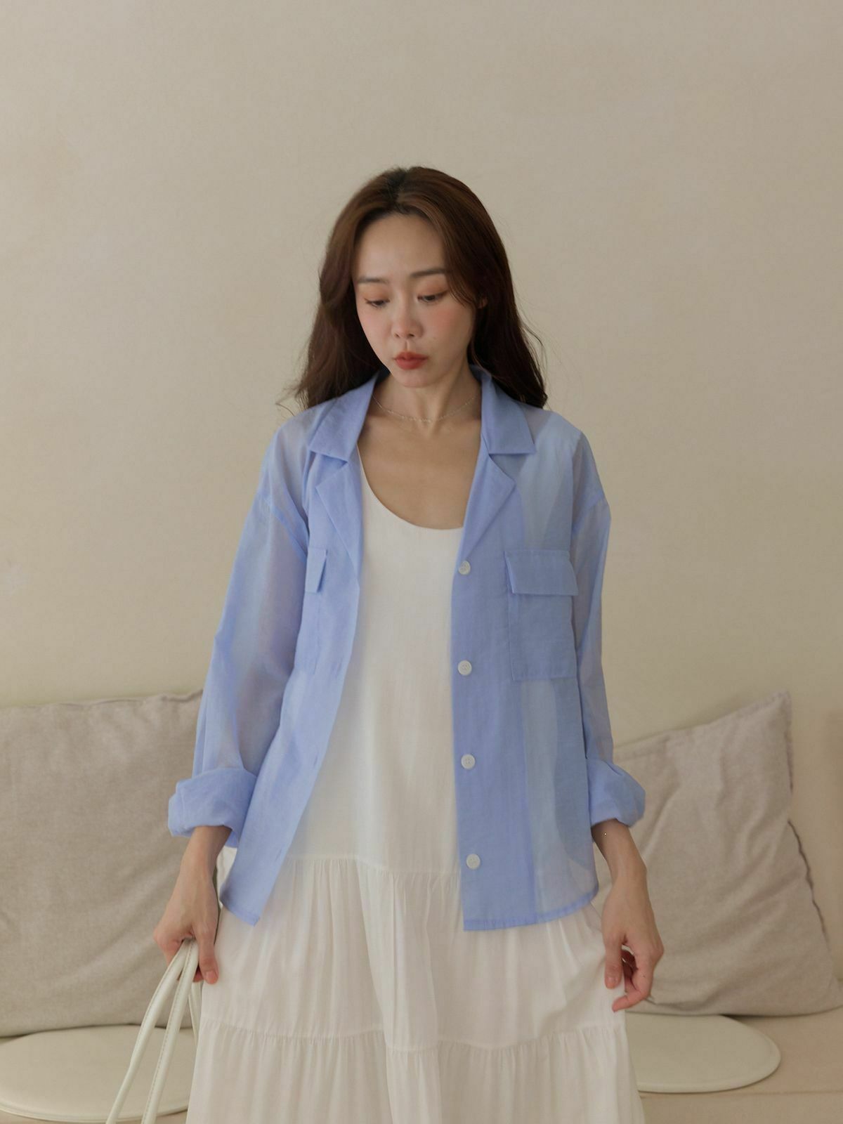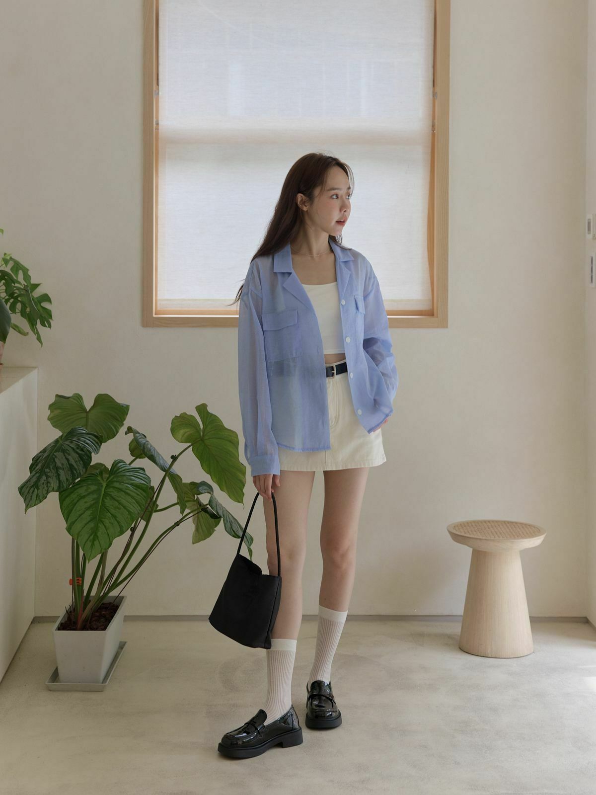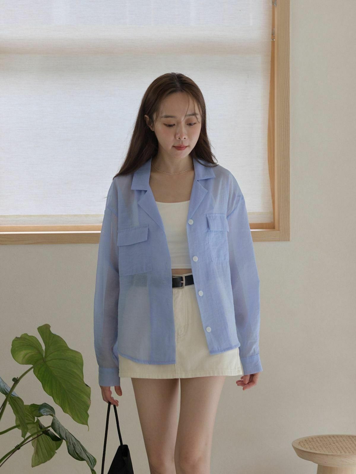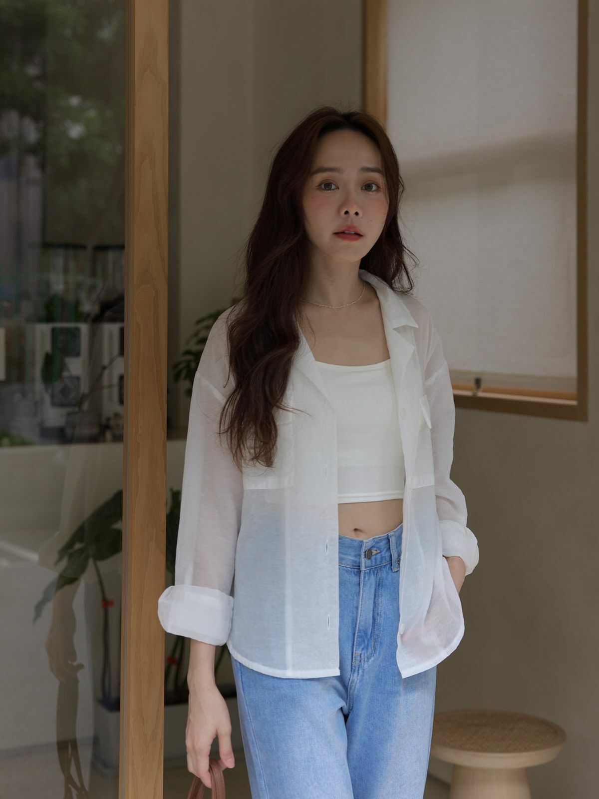 這款是夏天也能穿的薄長袖透膚襯衫🥳
