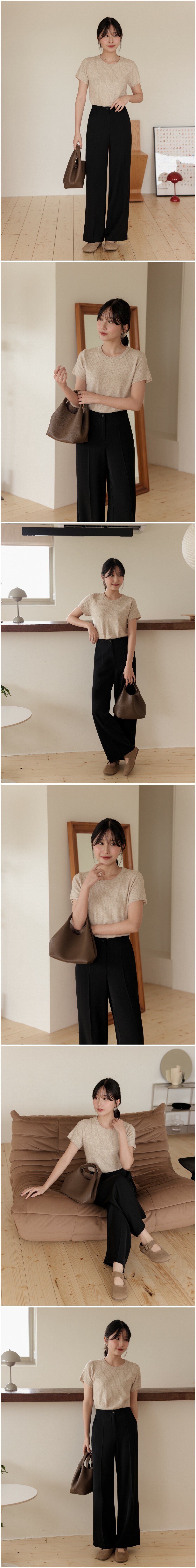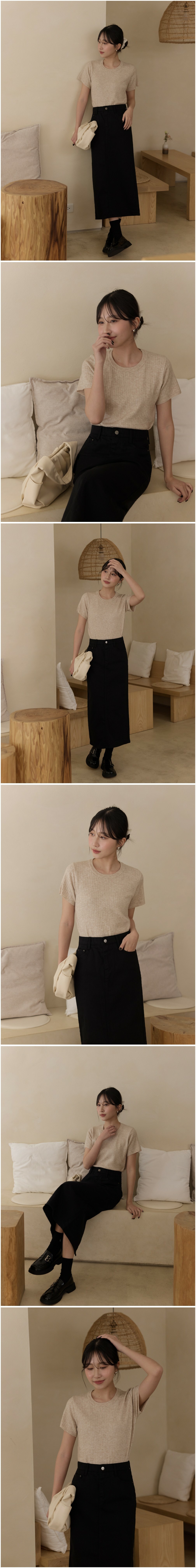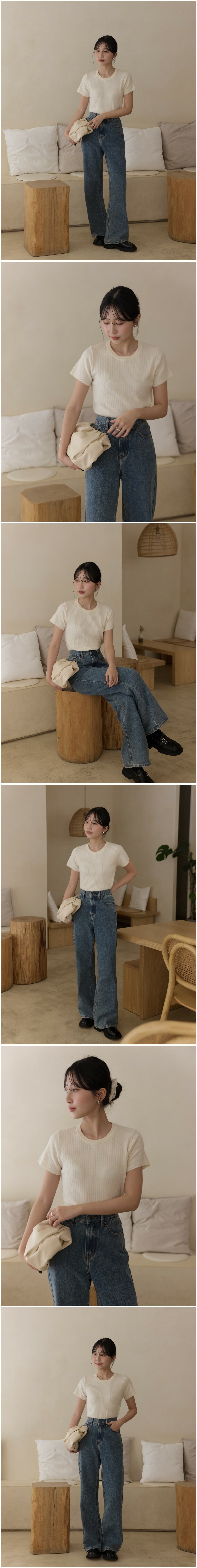 小露鎖骨的圓領高度,搭配顯瘦直坑紋