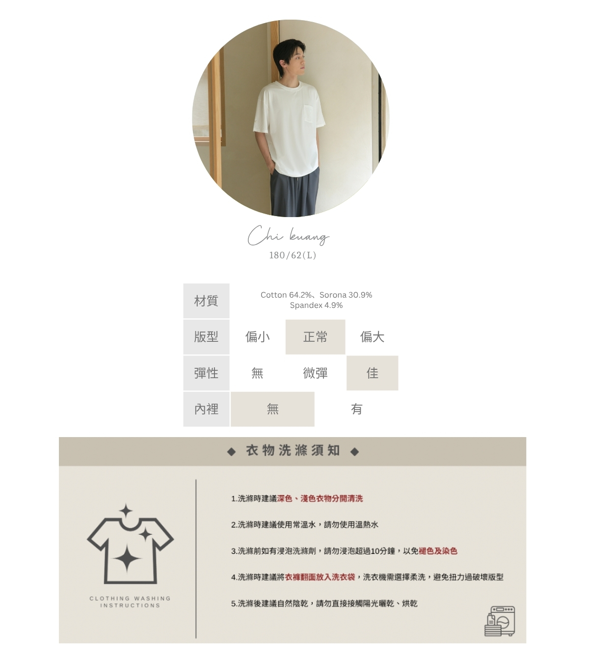 布料扎實、領口強化車縫,歷經多次水洗依然維持版型與挺度。